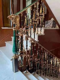 別墅銅藝樓梯-銅樓梯欄桿色彩變化:銅欄桿會(huì)隨著時(shí)間的推移逐漸氧化,形成獨(dú)特的綠色或青銅色,增添了古樸 ..